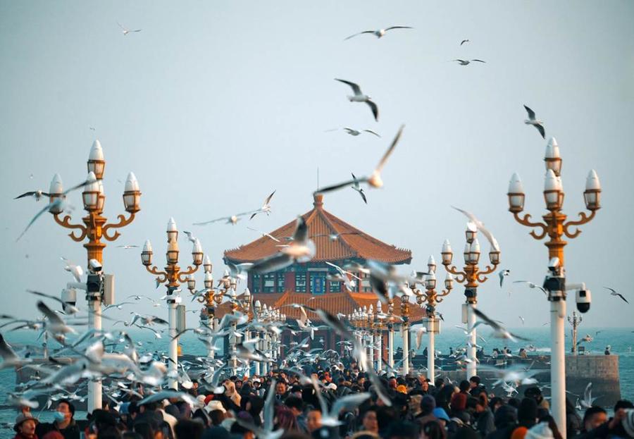 万鸥翔集的画面,吸引了来自全国各地的游客。今年春节假期,栈桥景区日均客流量达到5万余人。进入3月,日均客流量也稳定在两万人左右。